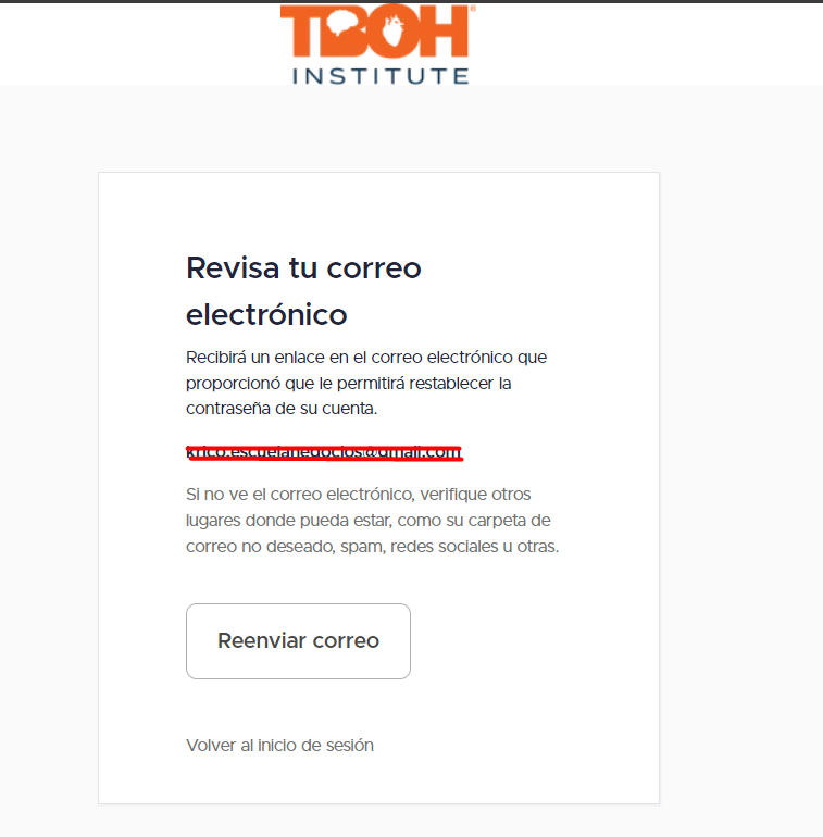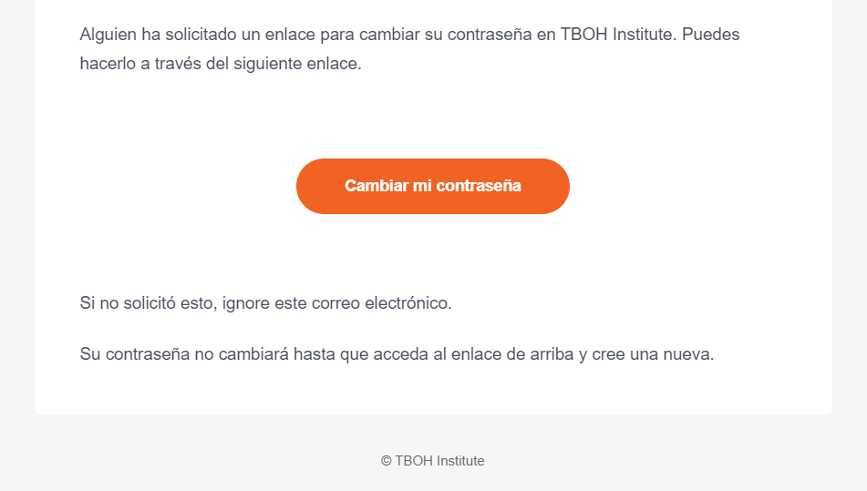 8. En tu bandeja de correo electrónico, debes abrir el correo que llegará de TBOH Institute, donde te pedirá dar clic en botón: Cambiar mi contraseña